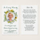 Tarjetas de oración funerales para la simpatía del girasol Eucalyptus moderno. Esta sencilla y elegante tarjeta de plegarias conmemorativas cuenta con un moderno eucalipto verde y un elegante diseño de girasoles. Front "In Loving Memory" Personaliza esta tarjeta de oración funeraria con fotos, nombres y fechas de sus seres queridos y sentimientos. Volver ~ Poema 'Miss Me', que puede ser personalizado, por favor contacte si quiere un diseño con un poema específico distinto a. Esta tarjeta de oración conmemorativa será un tesoro agudo, para los servicios funerarios y la celebración de la vida. DERECHOS RESERVADOS © 2020 Judy Burrows, Black Dog Art - Todos los derechos reservados. Memorial tarjeta de oración del funeral del girasol Eucalyptus