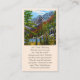 Elegante tarjeta de memoria funeral de recuerdo con hermosos pinos y un lago de montaña en el pintoresco Parque Estes, Colorado. Ilustracion de una pintura al óleo original del pintor de arte fino Daniel Fishback. La parte posterior de la tarjeta también es personalizable para su propio mensaje personal. Esperamos que esta carta con la hermosa Bendición irlandesa le dé un poco de paz en este momento difícil.