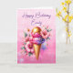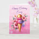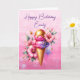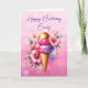 Tarjeta de cumpleaños personalizada. Hermoso cono de helado rosa, púrpura y dorado y flores hechas en un estilo acuarela ai art.