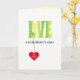 Envíe el AMOR el el día de padre. Este diseño moderno brillante tiene AMOR en mayúsculas coloreadas de color verde amarillo con un modelo de las estrellas blancas, y hay un corazón rojo que cuelga del L.