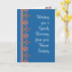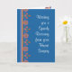 Un bonito consigue la tarjeta bien para alguien que está teniendo cirugía de corazón, con un modelo de la frontera de flores anaranjadas, rosadas y azules y de un adorno de Rangoli, de un collage de papel pintado a mano de Judy Adamson. Parte de la colección elegante y Painterly de "Rangoli".