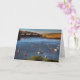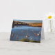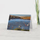 Un notelet/una tarjeta hermosos que muestra una vista del río Avon en Bantham, en la costa oeste del sur de Inglaterra. La oscuridad está estableciendo adentro para la noche y los barcos y los lanzamientos amarrados de vela toman el sol en los rayos pasados del día de muerte - una escena típicamente inglesa del río durante verano tardío.