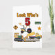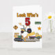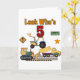 A los niños que les encanta la construcción y los camiones grandes les encantará este diseño de 5 años de los Vehículos de Construcción que dice "Mira quién tiene 5" en botones de 5 años, camisetas, tarjetas, pegatinas, tazas y más.