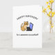 un lindo y gracioso mascota gato con una laptop y unas gafas feliz tarjeta de cumpleaños, con un peinado juego de palabras! ¡una gran carpa para los contables! ¡reemplace a los contadores por auditores, banqueros, comerciantes, etc!