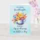 Esta hermosa tarjeta del Día de la Madre es una manera sincera de honrar a una nieta que se ha convertido en una madre amorosa y devota. Una encantadora taza de té rebosante de flores coloridas se apoya en un suave fondo de color azul claro, creando un ambiente suave y femenino. El diseño es dulce y sereno, perfecto para expresar orgullo, amor y una silenciosa bendición espiritual. Dentro, el mensaje refleja la profunda alegría de ver que comparte amabilidad, calidez y cuidado con su propia familia. Un gran placer para celebrarla con gracia y amor.