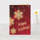 Esta hermosa tarjeta de vacaciones no religiosa presenta copos de nieve dorados sobre un fondo rojo intenso. Los mensajes en el frente y en el interior de la tarjeta son editables, así que adelante, cambie los mensajes, así como el tamaño, el estilo y el color de la letra. Los colores de fondo en el interior y en la parte posterior también se pueden cambiar. Estas son perfectas para una tarjeta de vacaciones genérica no religiosa para uso personal o corporativo.