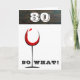 Tarjeta de cumpleaños divertida de Vidrio de Vino Tinto de Madera Rústica 80 Así que qué. Tarjeta de felicitación de cumpleaños número 80 inspiradora para una mujer o un hombre que celebra su cumpleaños ochenta. Viene con una cita divertida e inspiradora 80 Así que qué y un vaso de vino abstracto con vino tinto. Puedes cambiar el número de edad y usar la tarjeta para cualquier edad que desees.