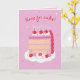 Una carta de cumpleaños de chicas con una rebanada de pasteles de época pintada a mano con helados rosados y de nata roja, cerezas y arcos rosados. Este pastel de cumpleaños al estilo de la coqueta está de moda en este momento. Ilustraciones dibujados a mano por mí, Carmia Jordaan.