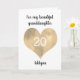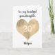 Una tarjeta personalizada de cumpleaños número 20 para ella que presenta un corazón de acuarela dorada en la parte delantera. Podrá personalizar fácilmente la parte delantera de la tarjeta de cumpleaños con su edad y nombre. Esta tarjeta personalizada de cumpleaños número 20 sería un gran placer para ella.