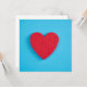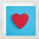 Este diseño presenta una imagen de un corazón rojo brillante que originalmente estaba hecho de fieltro; está colocado sobre un fondo azul claro.
