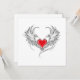 Corazón rojo pintado de forma artística con alas de ángel gris, decorado con un contorno suave negro.