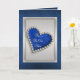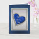 Tarjeta Corazón de diamante azul romántico plateado