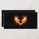 Ángel dispara el corazón con las alas flameantes sobre fondo negro.
