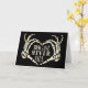 Esta tarjeta de boda gótica es perfecta para parejas que prefieren que las cosas sean un poco espeluznantes y espantosas. Esta tarjeta presenta una ilustración de manos de esqueleto en forma de corazón enmarcando el mensaje EL AMOR VERDADERO NUNCA MUERE. El gráfico y la letra están en color crema o marfil sobre fondo negro. El mensaje interior en letra negra está listo para que agregues tu propio saludo personalizado.