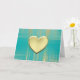 Tarjeta Corazón de oro sobre cuadros turquesa