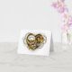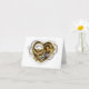 Corazón mecánico, volumétrico, de vapor punk con manómetro de presión, acero y engranajes dorados sobre fondo blanco. Estilo Steampunk.