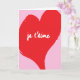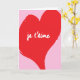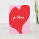 Tarjeta Corazón rojo con texto je t’aime sobre fondo rosa