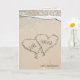 Tarjeta corazones de aniversario en la playa en arena con