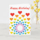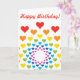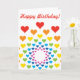Alegre tarjeta de cumpleaños con moderno patrón cardíaco en color arcoiris. Impreso en todos los lados.