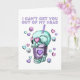 Tarjeta del día de San Valentín bastante espeluznante con corazones de amor azules y morados pastel y calaveras flotando alrededor de una taza de bebida de burbujas de té con calavera. Un poco femenino y un poco gótico, con un mensaje que dice: No puedo sacarte de mi cabeza. Dentro está en blanco para que puedas escribir a mano tu propio mensaje perfecto para aquel que siempre está en tu mente.