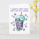 Tarjeta de día de San Valentín bastante espeluznante con corazones de amor azules y morados pastel y calaveras flotando alrededor de una taza de bebida de té de burbujas de boba de calavera. Un poco femenino y un poco gótico, con un mensaje que dice: No puedo sacarte de mi cabeza. Dentro está en blanco para que puedas escribir a mano tu propio mensaje perfecto para la persona que siempre está en tu mente.