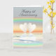 Tarjeta de felicitación con mi imagen de dos corazones de papel flotando en el agua bajo un arcoíris.