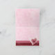 Tarjeta de saludo El día de San Valentín de estilo Scrapbook que muestra X y O's, cinta rosada, corazones de papel o de tela con patrones de botón y floral por dentro y por fuera.