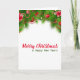Corona de Navidad y bombillas rojas, y regalos Tarjeta de felicitación