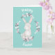 Tarjeta Corona de Pascua de conejo rosa verde azulado