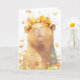 Esta encantadora tarjeta de saludo cuenta con un sereno capibara que lleva una flor de la corona, rodeada por una soleada gama de flores vibrantes. Los suaves colores pastel y la expresión exquisita aportan un sentimiento de alegría y tranquilidad que cautivan el espíritu amable del capibara. Perfecto para los amantes de la naturaleza y de los animales, este ilustracion adorable le da un toque alegre a cualquier ocasión. Envíe esta tarjeta para compartir sonrisas y calidez, haciéndolo ideal para cumpleaños, notas de agradecimiento o simplemente para iluminar el día de alguien.
