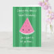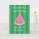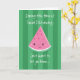 Durante este tiempo de distanciamiento social, esta linda carta traerá una sonrisa y saben que están pensando en ellos. Un juego de palabras en la tajada de la sandía, que alguien sepa que son "¡uno en un melón!" Una jugosa pieza de sandía tiene una sonrisa y se destaca en el fondo de rayas verdes.