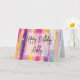 Tarjeta de cumpleaños con un diseño de fondo abstracto. Rayas vibrantes en colores atrevidos y pastel. Rosa, azul, violeta y amarillo combinados con un purpurina fino y brillante de color dorado sobre la parte superior.