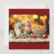 Una colección de deliciosos platos, como galletas, un batido y un pastel se organizan artísticamente sobre un mantel decorado, rodeado de manzanas y hojas de otoño. Las cálidas y brillantes lámparas de fondo crean un ambiente acogedor y festivo. Photoshop CS5 de arte digital