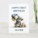 Celebrate a little one’s big milestone with this adorable country teddy bear 1st birthday card. Dressed in a shady hat and blue scarf, the sweet bear sits beside a one-candle birthday cake while holding a bunch of balloons; perfect for delivering heartfelt birthday cheer.