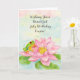 A charming choice for a July birthday, this design features a delicate pink waterlily blooming in the heart of summer, symbolizing love, renewal, and the beauty of growing through each season of life. The red-eyed tree frog adds a playful spark of wonder and happiness, bringing a sense of warmth and gentle joy to the scene. Together, the nature-inspired artwork creates a tender and uplifting keepsake, making it a heartfelt birthday card for a cousin.