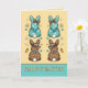 Tarjeta Cowgirl Leopard Print Teal Brown Bunnies Easter