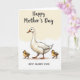This card shows a tall, white water bird standing proudly at the center, with a gentle tilt to its head that suggests a caring watchfulness ❤️. Its orange beak and matching webbed feet add a warm pop of color against the soft, creamy feathers. Two small, fluffy chicks stand close on either side, colored in golden yellow with speckles of light brown, leaning in as if they feel safest near their guardian. Their forward-facing eyes and slightly tucked posture create a tender, togetherness-focused scene that reads like quiet friendship and family closeness. The background is a warm cream wash, like late-morning light, keeping the setting simple and calm 🌼. A short greeting sits near the top in a soft orange tone, with a smaller line of text placed underneath in a muted brown. Fine shading along the adult bird’s wings and neck gives the illustration depth, while the chicks’ down is shown with tiny feathery strokes. The ground beneath them is hinted with a faint beige shadow that anchors all three figures in place.