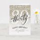 La moderna tarjeta de cumpleaños número 30 cuenta con el número 30, el guión de tipografía treinta y un nombre sobre un fondo brillante de un purpurina falso crema. Personaliza más con un nombre y un mensaje dentro.