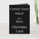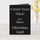 La Tarjeta Matte Create Your Own Black Navidades 5x7 es un lienzo en blanco para que explore su creatividad. O bien personalizar fácilmente añadiendo sus propias imágenes, texto y colores de fondo. Y crea tu propia tarjeta de saludo personalizado, tarjetas de cumpleaños personalizado, tarjetas de foto en blanco, tarjetas de amor personalizadas y otros regalos personalizados para cualquier ocasión especial! También revisa nuestra "Crear tu propia tarjeta negra y la colección de descargas" para más opciones de diseño e ideas de regalo personalizadas.
