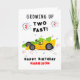 Growing Up Two Fast 2nd Birthday Kids Carreras Cars Birthday Card Greeting Card incluye un lindo y colorido coche de carreras con el texto "¡Creciendo dos rápido!" en un moderno guión de tipografía acentuado con el número 3 y los garabatos. Debajo de "Feliz Cumpleaños" personalícese con su nombre y añada su mensaje personalizado en el interior. Perfecto para las celebraciones de segundo cumpleaños de los niños. Disponible como tarjeta de felicitación de papel físico y tarjeta de felicitación imprimible de descarga instantánea digital. Diseñado por Evco Studio. Para coordinar elementos, vea www.zazzle.com/store/evcostudio
