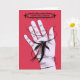 Diseño gótico espeluznante con un monstruo de la flor negra malvado con dientes cortantes mordiendo una mano que sale de un círculo rojo sobre fondo gris oscuro. Este extraño ilustracion inspirado en el horror en gris, rojo y negro atraerá a una persona a la que le gusta el estilo gótico y el inusual arte oscuro. Esta inusual carta tiene el texto de personalizable "Halloween feliz" en su parte delantera.