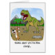 ¡Tan snarky y lleno de actitud como el Pembroke que Corgi es Galés, el perro es todavía bastante elegante saber que cuando usted ve un Tyrannosaurus Rex, la cosa más inteligente a hacer ESTÁ CORRIDA PARA SU VIDA! ¡Esta escena prehistórica tiene un dinosaurio de T-Rex el rugir poderosamente en el pequeño chucho mientras que él se atierra y los funcionamientos para él tan rápidamente como irán sus piernas nudosas! Arte divertido del corgi de Susan Stoneman. Esta tarjeta se puede modificar para requisitos particulares con su propio mensaje personalizado. Dice actualmente, "algunos días que usted es el corgi, y algunos días usted es el T-Rex!"