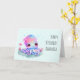 Tarjeta de cumpleaños con una imagen de un pulpo lindo y jovencito con una flor en la cabeza. Grandes ojos brillantes y una cara agradable.