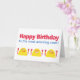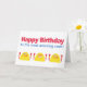Graciosa tarjeta de cumpleaños de cocina con tres graciosas criaturas amarillas sosteniendo tenedores y cucharas y el texto "¡Feliz cumpleaños al cocinero más asombroso!". Esta tarjeta graciosa es apropiada para la madre, el padre, la esposa, los amigos y todo aquel que ame cocinar.