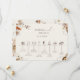 Presentamos nuestra impresionante tarjeta de cronología de bodas boho otoño con flores silvestres de color beige, que abarca un diseño sencillo y moderno que refleja la belleza de la naturaleza. Con flores de acuarela de otoño prensado y hojas de terracota, captura la esencia de los tonos naranjas quemados en octubre, creando un diseño minimalista y clásico que exuda calidez y encanto. El diseño tiene un toque de elegancia que inspira un delicado ambiente vintage, donde las hojas de color verde salvia, los acentos de cobre oxidados y los tonos de tierra floral crean un estilo único e inolvidable. Disfrute de la belleza de su día especial con un producto que capta un diseño mínimo pero único y que le permitirá disfrutar de una experiencia boda verdaderamente memorable. Contáctenos con cualquier pregunta sobre el diseño, y le ayudaremos a hacer el boda de sus sueños.