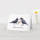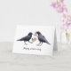 A pair of crows hold pink wild roses on this unique anniversary card.