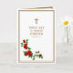 Celebre el aniversario del sacerdocio con esta hermosa imagen católica tradicional de un Crucifijo dorado con rosas rojas y versículo de las escrituras. En el lado izquierdo de la tarjeta está el poema de Jean-Baptiste Henri Lacordaire, O.P. (1802-1861)