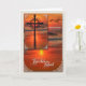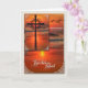 Condolencias más profundas - Nuestros pensamientos están con ustedes. Hermosa cruz en la puesta de sol como señal de paz eterna con una gaviota volando sobre las olas del océano en un tema costero.