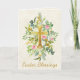 Tarjeta Cruz dorada y rosas rosadas para Pascua personaliz