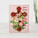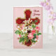 La cruz de color rojo y dorado con una abundancia de flores de bonito ha sido cuidadosamente retocada para resaltar los detalles maravillosos. Hay azulejos blancos de Pascua y rosas rosas lujosas. El frontal de la tarjeta tiene un fondo rosa rico. Una encantadora tarjeta de Pascua lista para que puedas personalizar el interior.